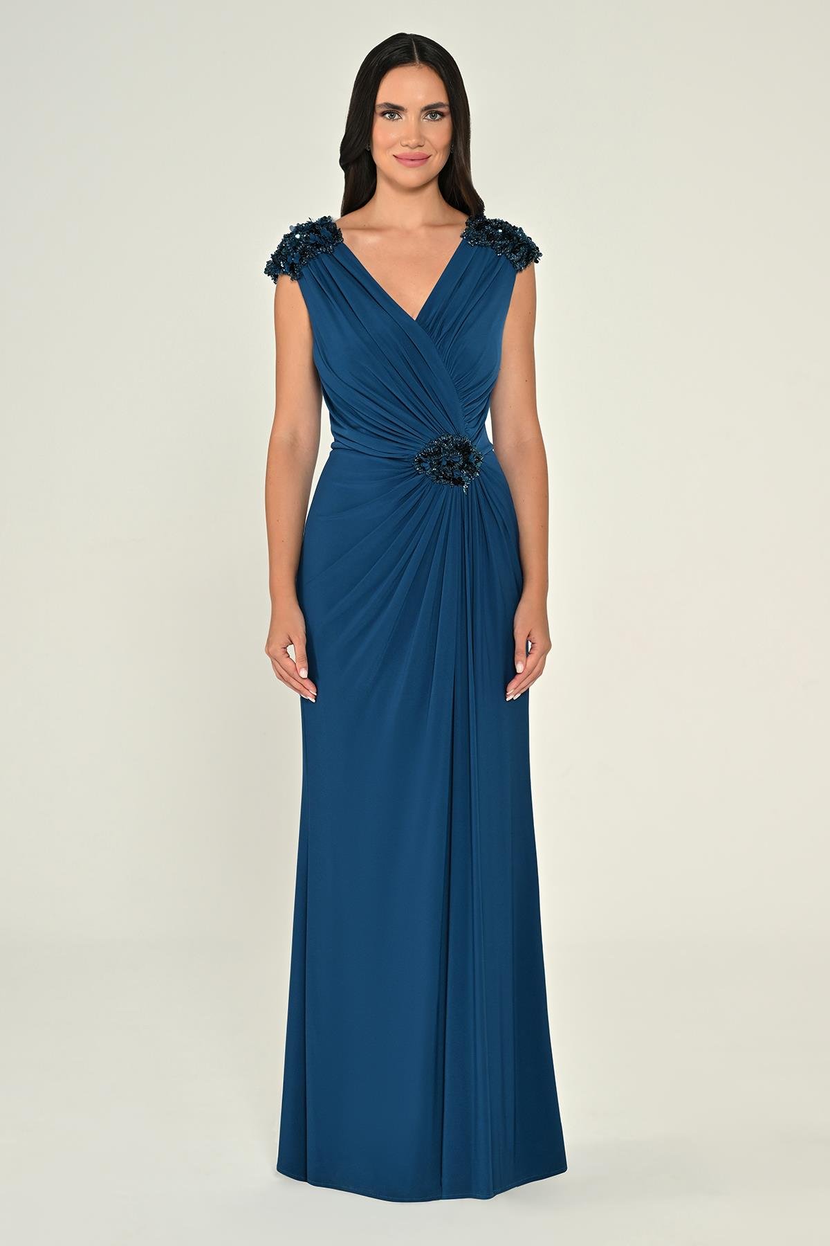 Alfa Beta Kadın Yırtmaçlı V Yaka Kolsuz Uzun Petrol Abiye & Mezuniyet Elbisesi AB5529-PETROL (AB5529-PETROL)