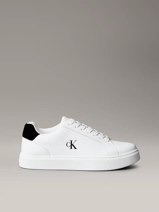 Calvin Klein Erkek Rahat Taban Bağcıklı Deri Düz Taban Beyaz Sneaker YM0YM01435-01W (YM0YM01435-01W)