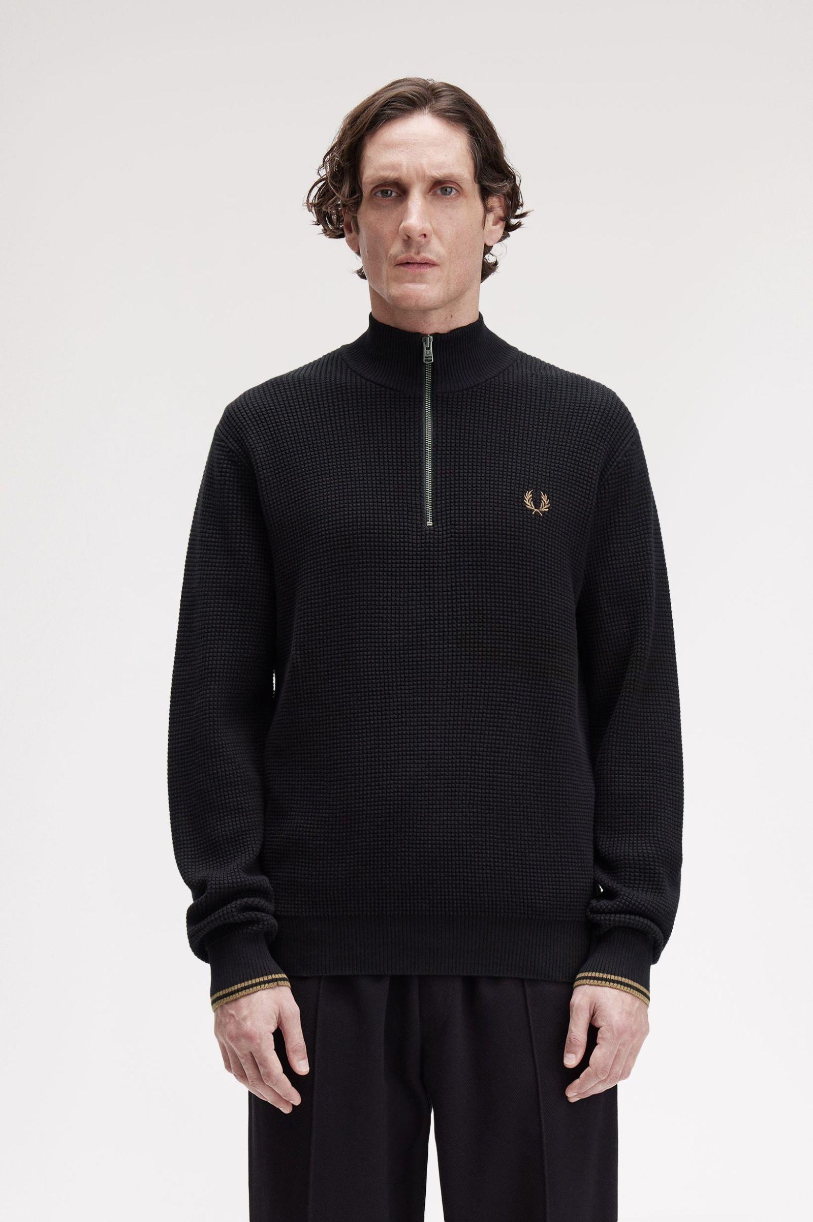 Fred Perry Erkek Dik Fermuar Kapama Yaka Uzun Kol Regular Fit Siyah Sweatshirt K8557-102 (K8557-102)