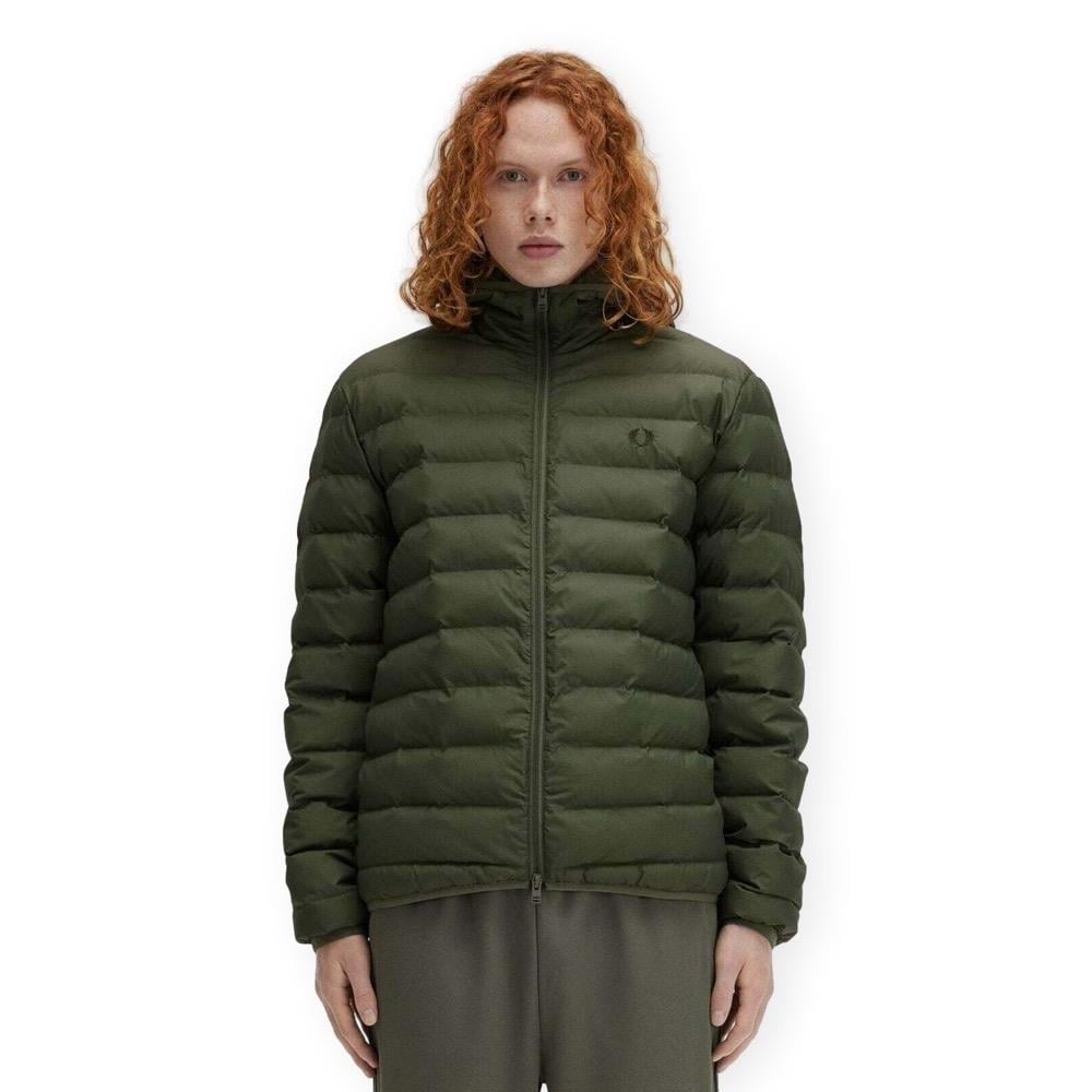 Fred Perry Erkek Kapşonlu Yaka Marka Detaylı Fermuarlı Şişme Yeşil Ceket J8553-X21 (J8553-X21)