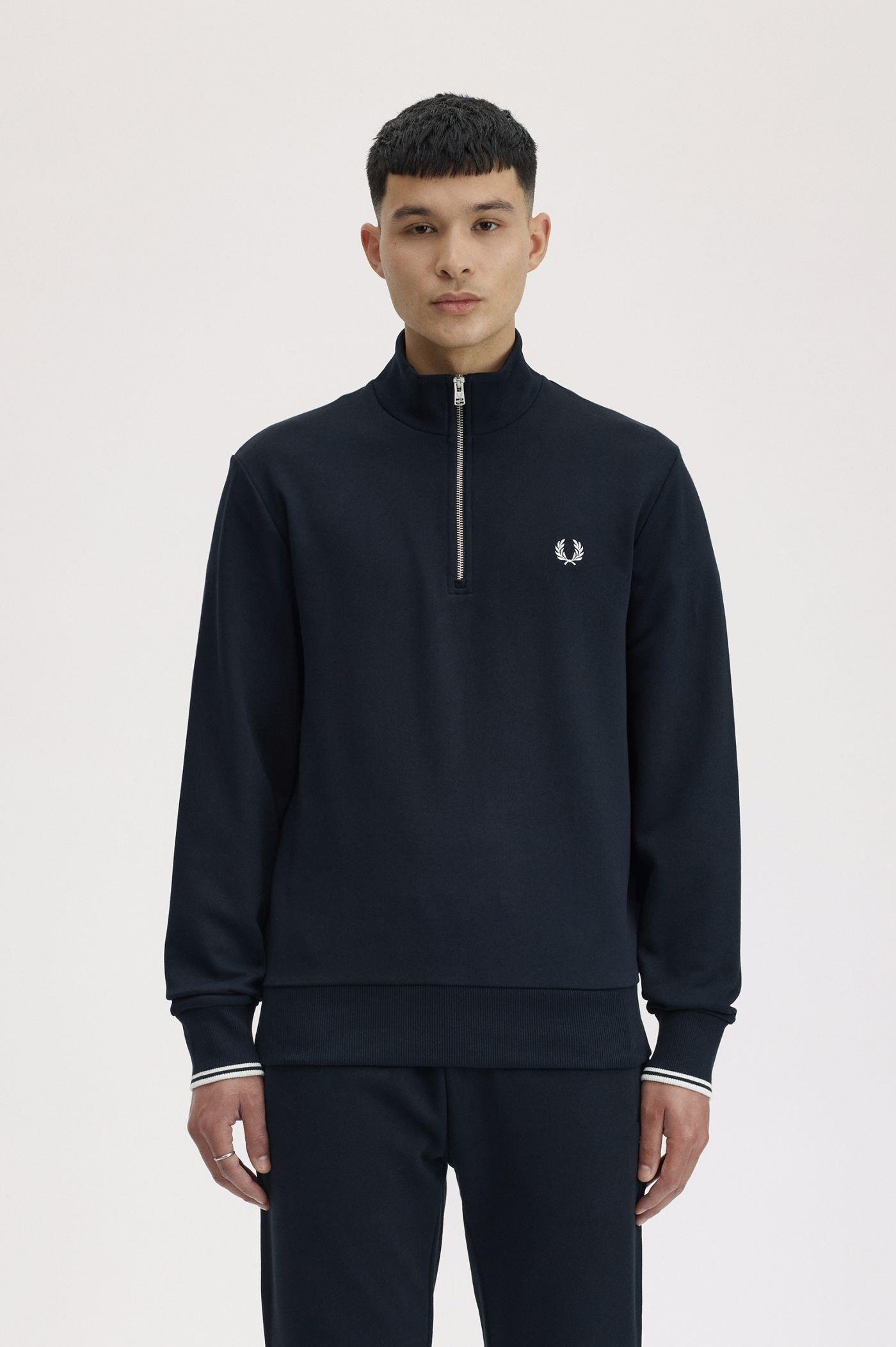 Fred Perry Erkek Normal Kalıp Yarım Fermuarlı Dik Yaka %100 Pamuklu Logo İşlemeli Uzun Kollu Lacivert Sweatshirt M3574-608 (M3574-608)