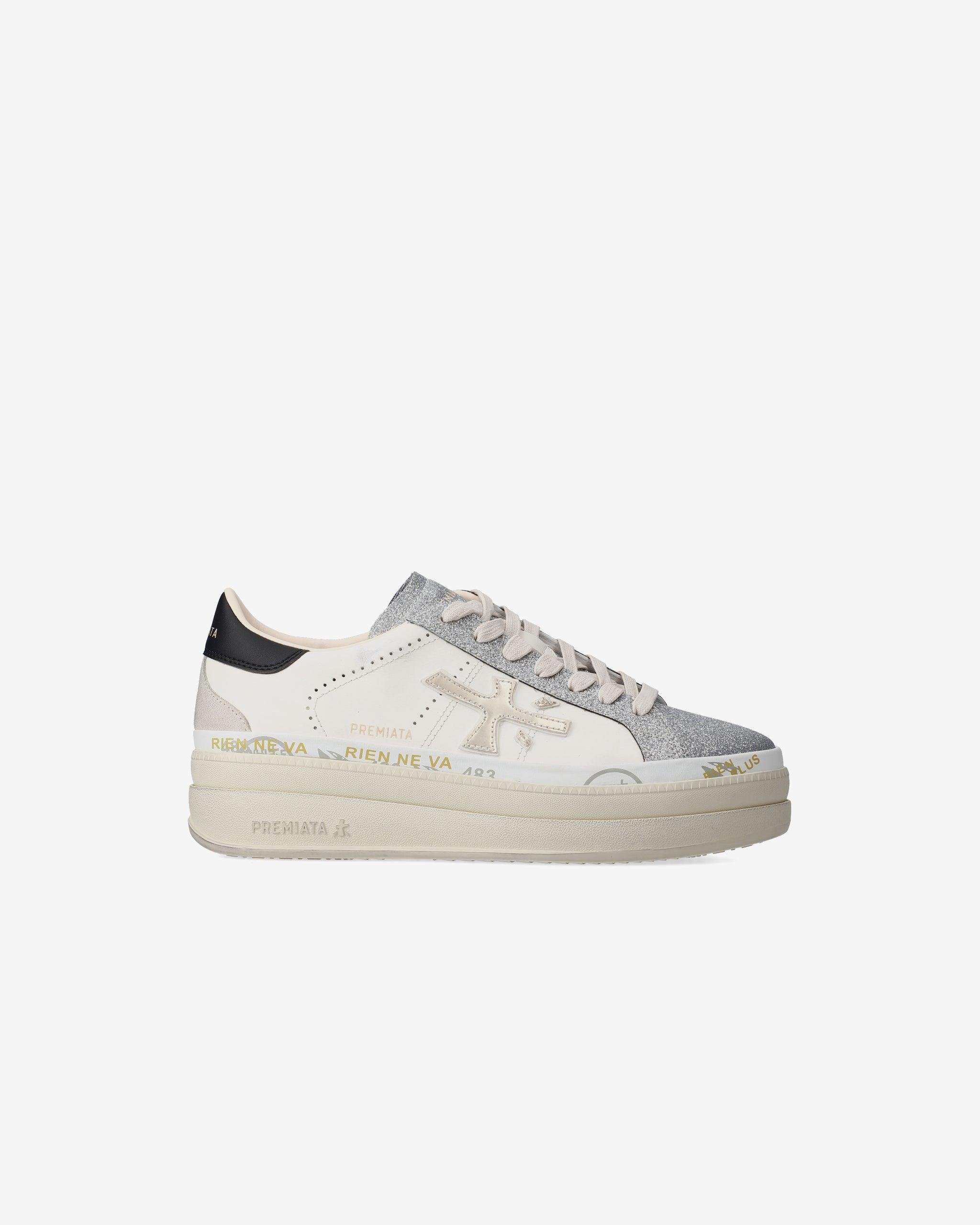 Premiata Kadın Deri ve Kumaş Karışımlı Gold Logo İmzalı Beyaz Sneaker CLAUDIA 7756-BEYAZ (CLAUDIA 7756-BEYAZ)